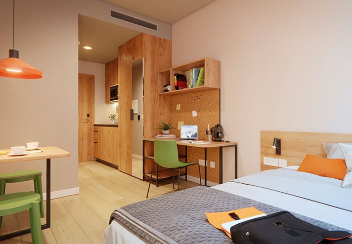 Livensa Living Studios Valencia Viveros, cuenta con habitaciones individuales, equipadas con cocina y baño privado, además de increíbles zonas comunes como piscina en la azotea con las mejores vistas de la ciudad, biblioteca o área de juegos, donde podrás acceder sin problema. ¡Todo sin coste adicional!